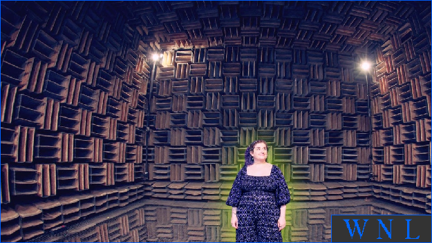 Cluett: Yeah, so we are in the historic anechoic chamber at Bell Labs. It is a room that absorbs 99.999 percent of sound-wave propagation and eliminates sound from the outside almost entirely. It is anechoic, meaning it lacks echo. So an anechoic chamber is intended to absorb as close to 100 percent of incidental reflection as you can possibly do.